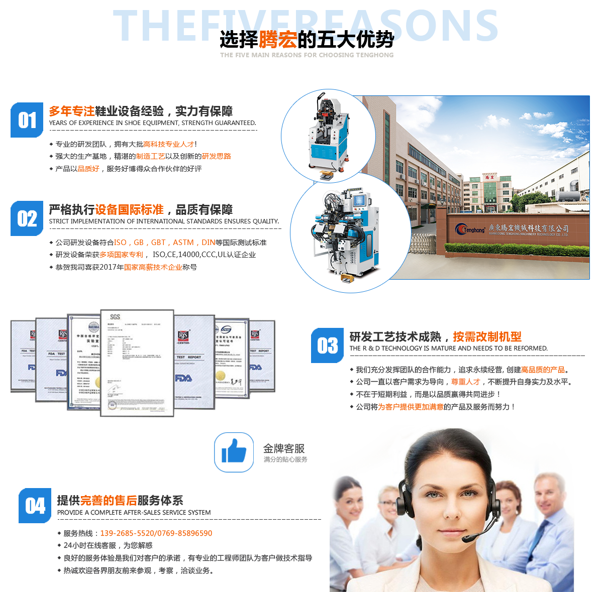 采用圓柱滑軌,上刀動作穩定。 整型上壓刀采用二段式進行,鞋面定型機操作安全,鞋面中心定位準確。 可視鞋面大小選擇所需這上刀下壓深度。 可選裝雙彎上刀。